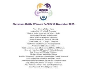 As we come to the end of 2025, I wanted to thank everyone who has supported FoPHS this year. Your generosity, in terms of donations, suggestions, volunteering at events and financial contributions is appreciated and you know that your children/young people benefit.