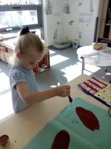 We have made the most of the nice weather and our outdoor provision. We have participated in some fantastic gross motor activities using the balancing beams, climbing apparatus and stepping in and out of the tyres. Keziah enjoyed playing in the big yard navigating the activities on the ground