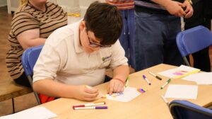 We were then delighted to welcome Newcastle City Learning, who led a movement-based music and drama session that encouraged our learners to express themselves through rhythm and movement. One of the highlights for our learners was a lively game where they took turns choosing an action for everyone in the room to follow. These included pretending to play the drums, doing the Mexican wave, and dancing around with joy.