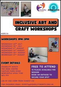 Disability North are running Inclusive Art sessions throughout the summer for any of our young ones aged 8 years and above.