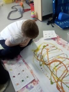 Our Autumn-themed painting session was another highlight of the week! Using Autumn objects such as leaves, pinecones, and twigs, the children created beautiful, large-scale artwork that was as fun to make as it was to admire.