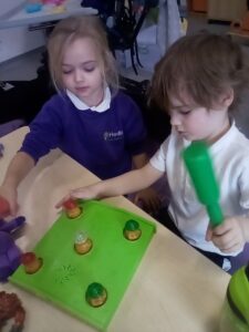 During a STEM session making Bug Homes, Isaac was touching mud and leaves which he found difficult but with encouragement and some gloves he did a great job