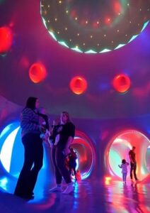 An immersive world of light & colour – explore glowing tunnels, domes, and pods