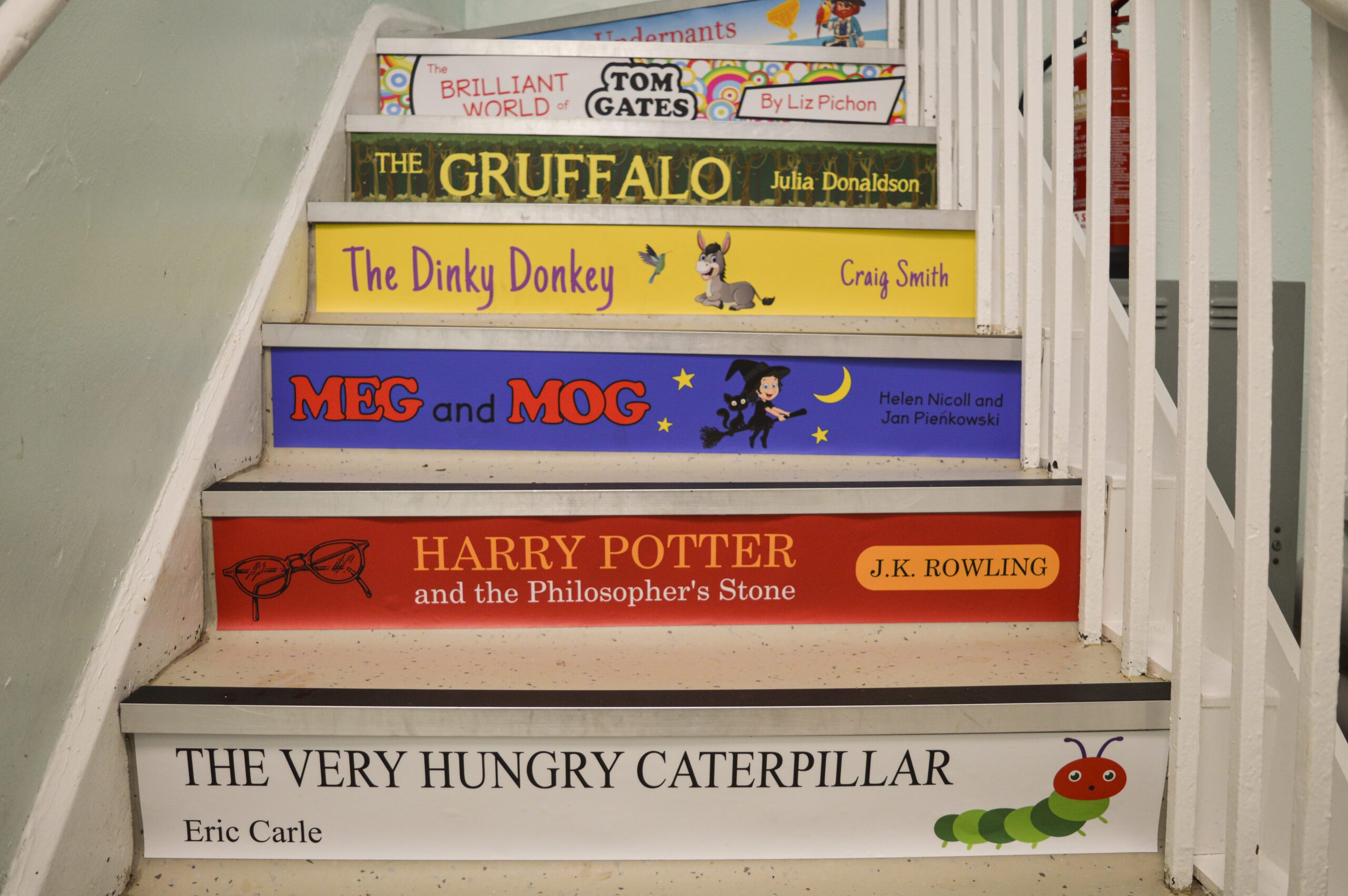 World Book Day was a day to celebrate our literary themed spaces, including our Hillcrest Library which is now a safe space for all students looking for their next read (including those who want to look inside the wardrobe and take a peak at Narnia). The stairs going up towards the art classroom have now also been decorated with literary themed vinyl, with each stair depicting a different book spine.