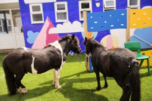 Students were overjoyed to see Salty and Jasmine the horses, the tortoise named Dave, chicken named Babs, bearded dragon Bob and many more.