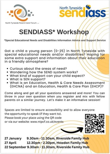 Following popular demand, we are delighted to be working alongside North Tyneside SENDIASS to deliver a new series of FREE Workshops to our parent carer community…