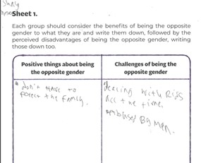 4AJ has looked at the issue of gender equality/inequality. We’ve had discussions relating to the theme, constructed a timeline of major events in the struggle for equality, watched an amusing film which imagines a reversal of gender stereotypes in an office environment and recorded our thoughts on the positives and negatives of being a woman.