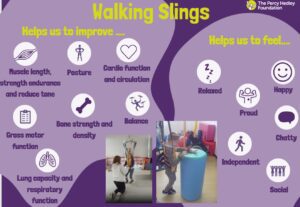 We have very much enjoyed utilising our new walking slings in school, and our children are able to access these within the areas of the school that have ceiling tracking. So, for now, this has been within the physio room, the Garden room, and in the Sensory Motor Suite