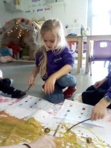 Our Autumn-themed painting session was another highlight of the week! Using Autumn objects such as leaves, pinecones, and twigs, the children created beautiful, large-scale artwork that was as fun to make as it was to admire.