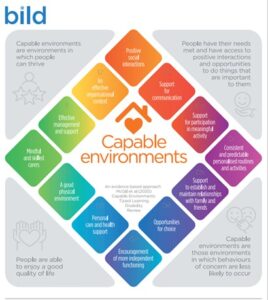 Capable Environments within the context of Positive Behaviour Support (PBS) refer to settings that are intentionally designed to reduce the frequency and severity of behaviours that challenge, while enhancing the quality of life for individuals—particularly those with learning disabilities, autism, or complex needs