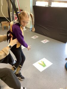 In hydro, she has worked hard on cycling her legs and actively pushing off the pool wall or a staff member’s hand to develop her leg strength further!