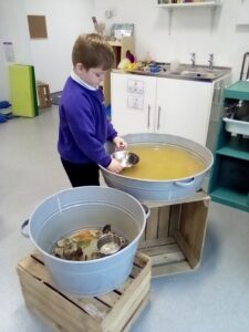 Hayden dived into water play (not literally!) and had so much fun transferring water from one place to another – he was completely engaged and loved every minute