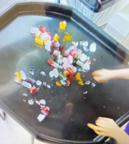 Next, we explored with coloured ice and warm water. We made predictions again and guessed that the ice would melt. We were right! But something amazing happened. The colours began to mix together, making new and surprising colours. 🌈