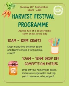 Our Harvest Festival is fast approaching! All the fun of a countryside farm show in the city. Sunday 28th September, 10am – 4pm