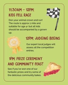 11.30am-12pm: Kids Fell race. Don your animal crown and run! The route is approx 1 mile and suitable for age 4+ but all kids should be accompanied by a grown up.